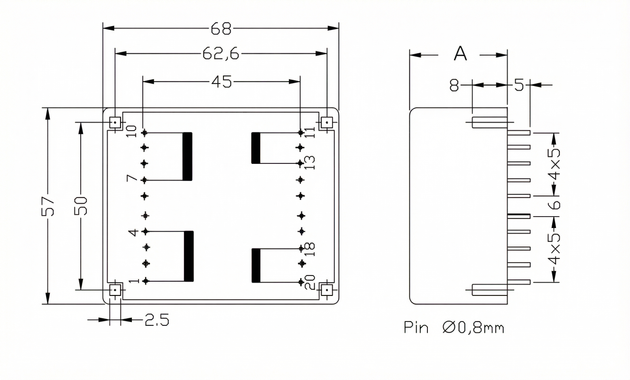 TRANSFORMADORES DE CIRCUITO IMPRESO BECKRO - MODELO EI20