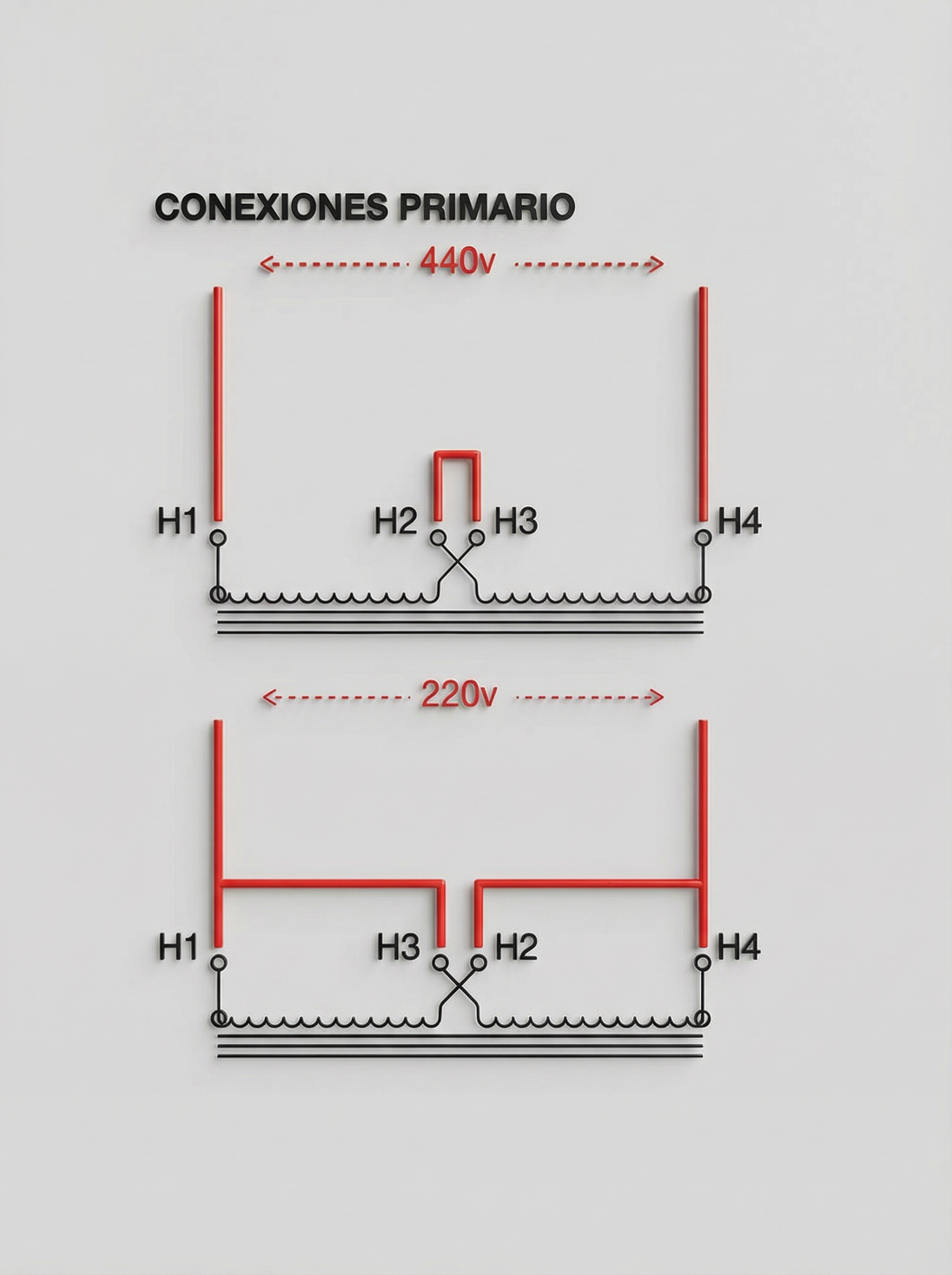Tensiones típicas: 480/240V en primario y 240/120V en secundario.
